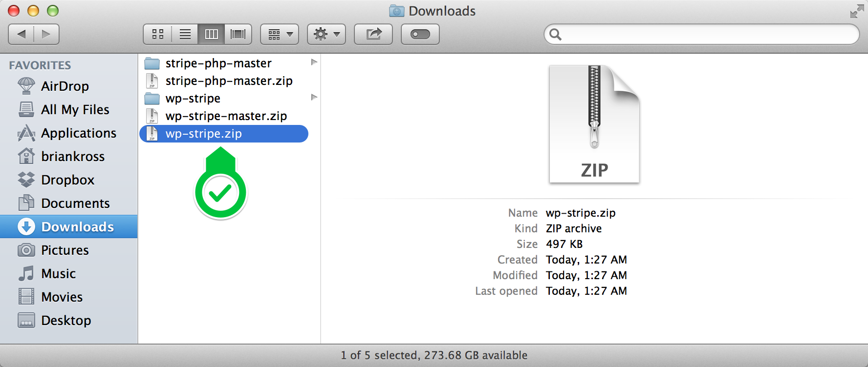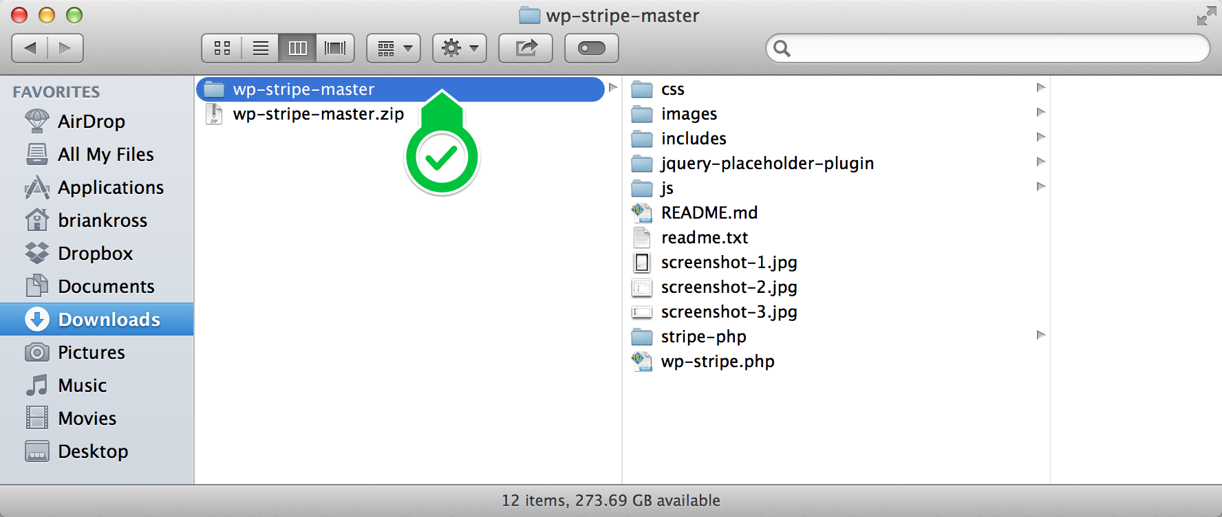 Create a ZIP archive of the updated “wp-stripe” folder. You should have an archive named “wp-stripe.zip” as a result.